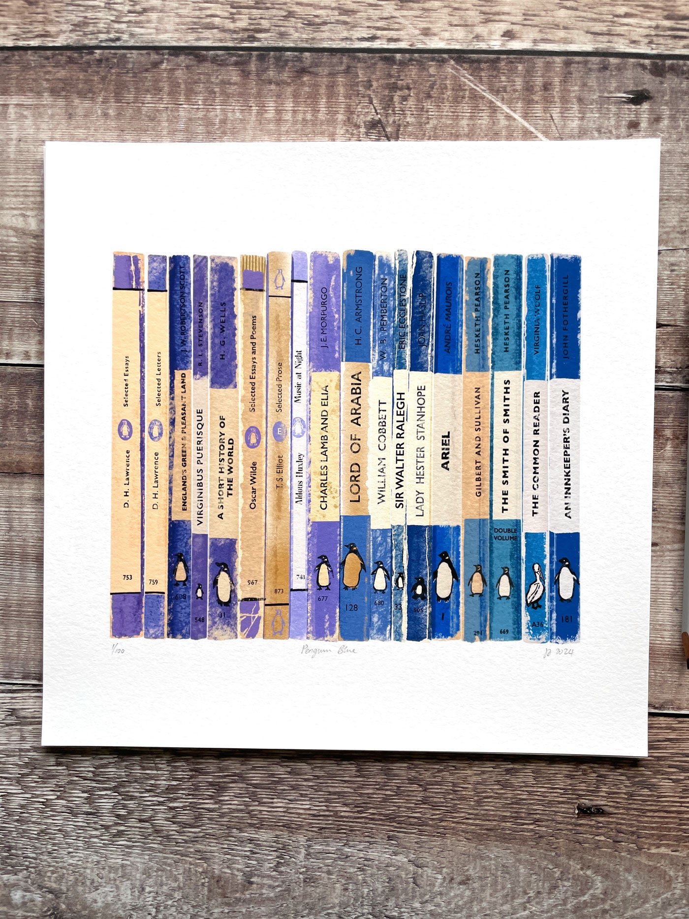 Penguin Blue - book collection, limited-edition, Giclee print