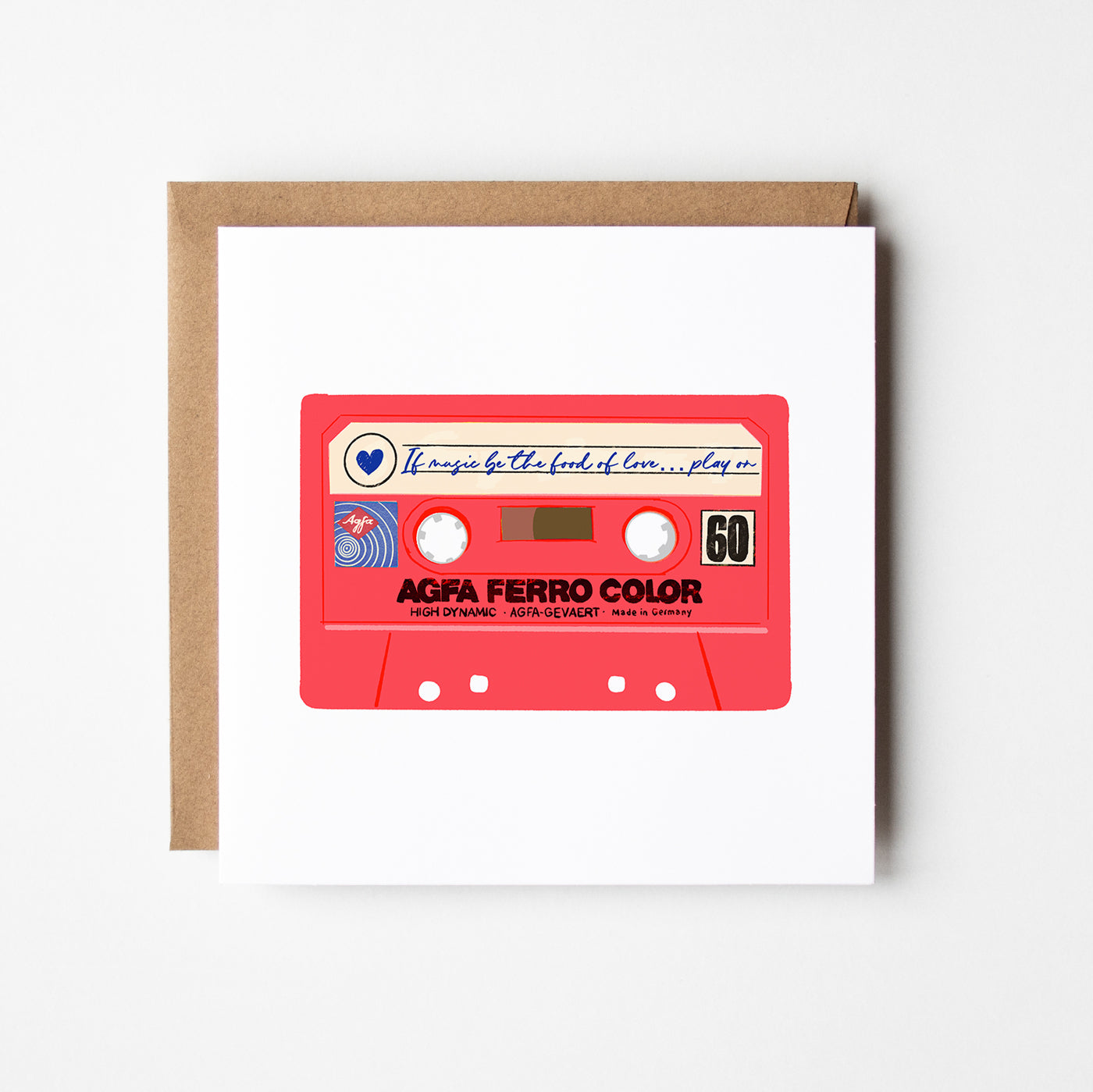 Inspired by classic mixtapes and classic literature, this card features the Shakespeare quote, “If music is the food of love… play on.” Ideal for Valentine’s Day, anniversaries, or moments worth celebrating.